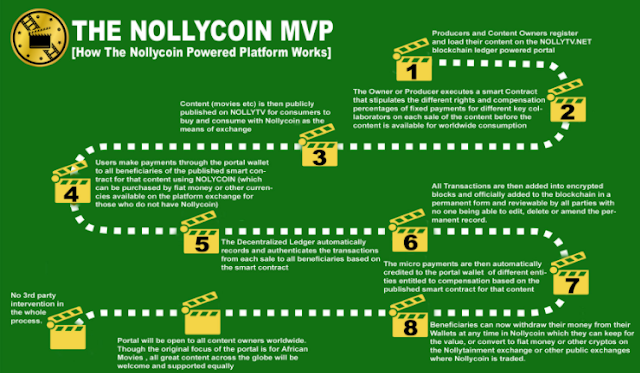 Nollycoin was conceived, designed and created to provide cutting edge solution to the intractable problems of Nollywood (African Movies generally) Some of the direct and immediate purposes of Nollycoin to address specific problems in the industry include: